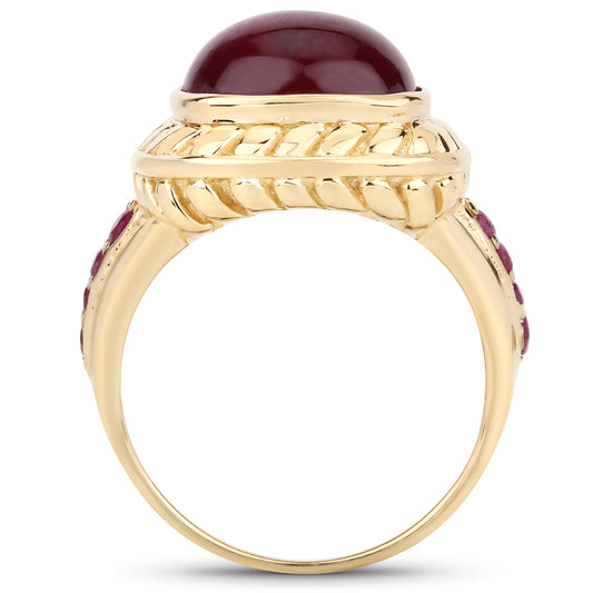 14K Yellow Gold Plated Dyed Ruby and Ruby Sterling Silver Ring
