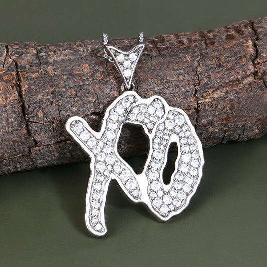 Genuine White Cubic Zirconia "XO" Pendant Necklace in Sterling Silver with Platinum Plating