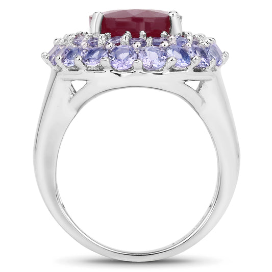 Glass Filled Ruby and Tanzanite Sterling Silver Halo Ring