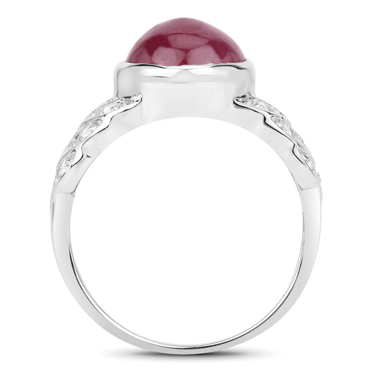 Glass Filled Cabochon Ruby Sterling Silver Ring