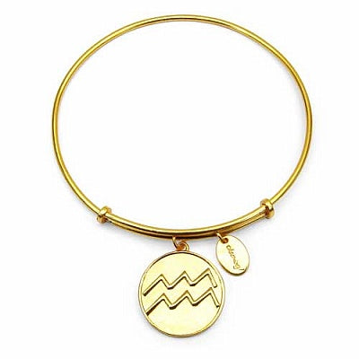 Gold Plated Brass 'Zodiac Symbol for Aquarius' Embossed on Coin Bangle