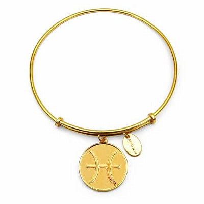 Gold Plated Brass 'Zodiac Symbol for Pisces' Embossed on Coin Bangle