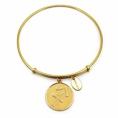 Gold Plated Brass 'Zodiac Symbol for Saggitarius' Embossed on Coin Bangle