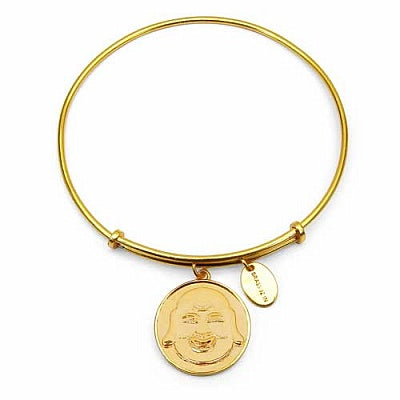 Gold Plated Brass 'Laughing Buddha Face Symbol' Embossed on Coin Bangle