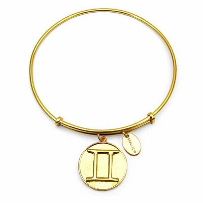Gold Plated Brass 'Zodiac Symbol for Gemini' Embossed on Coin Bangle