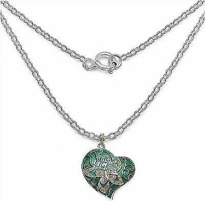 Tashan: 0.34CTW Yellow Cubic Zircon .925 Sterling Silver Pendant With Green Enamel