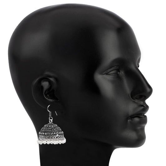 32.07 Grams White Synthetic Pearl Oxidised Earrings