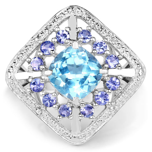 Genuine 14K Yellow Gold Plated Blue Topaz and Tanzanite Sterling Silver Ring