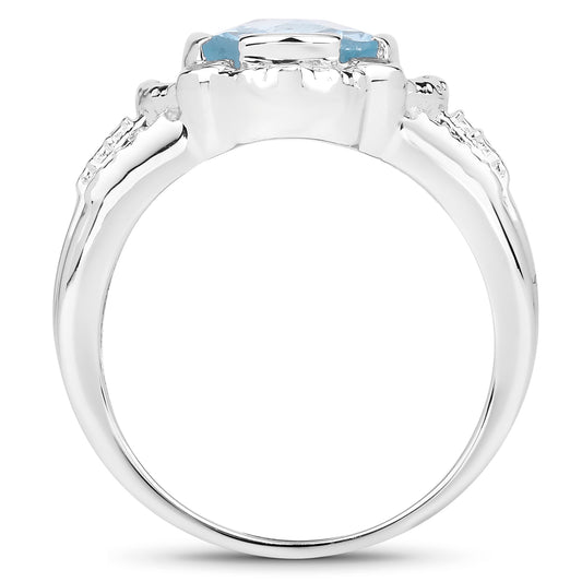 Genuine Blue Topaz and White Topaz Sterling Silver Ring