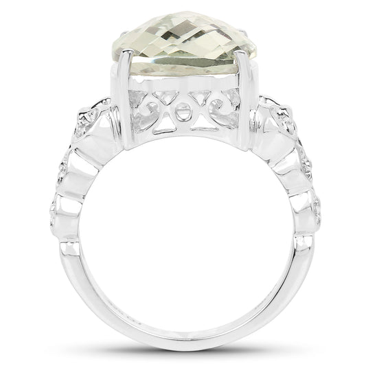 Genuine Green Amethyst, White Topaz and White Diamond Sterling Silver Ring