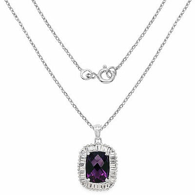 Genuine Amethyst Cushion-Cut & White Topaz Halo Sterling Silver Pendant
