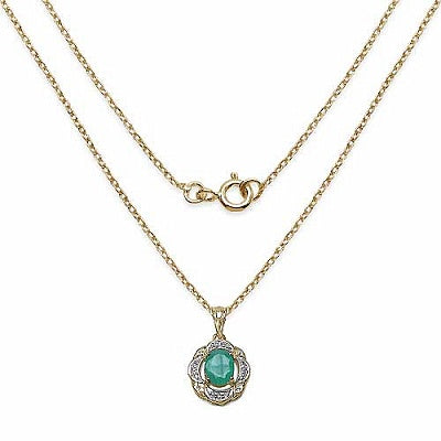 Genuine Emerald and White Topaz 14K Yellow Gold Plated Sterling Silver Halo Pendant
