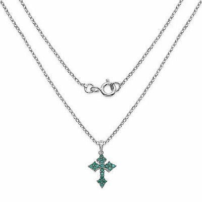 Genuine Emerald Round-Cut Gemstones Sterling Silver Cross Pendant