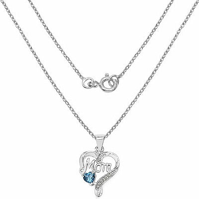 0.54CTW Genuine Swiss Blue Topaz & White Topaz .925 Sterling Silver Heart Shape Mom Pendant