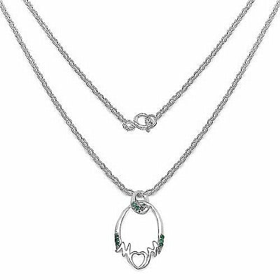 Genuine Emerald Sterling Silver Heartbeat Mom Pendant