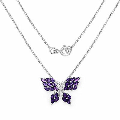 Genuine Amethyst Marquise Gemstones Butterfly Sterling Silver Pendant