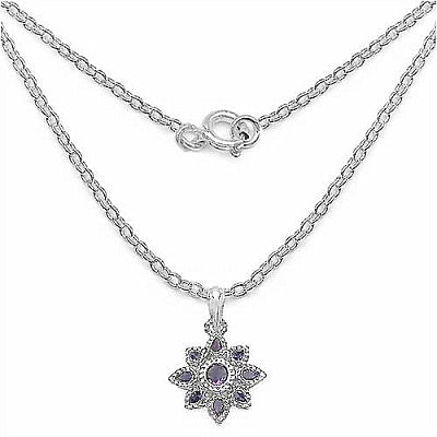 Genuine Amethyst and Tanzanite Sterling Silver Floral Pendant