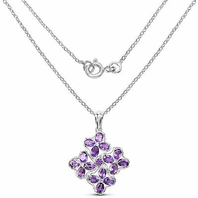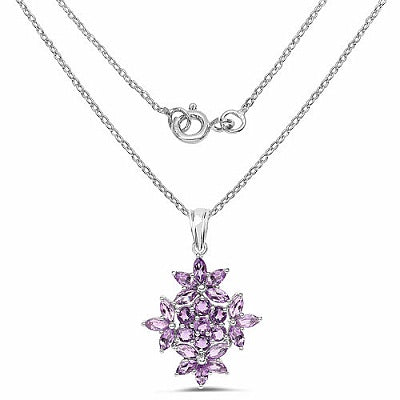 Genuine Amethyst Multi-Cut Gemstones Sterling Silver Floral Pendant