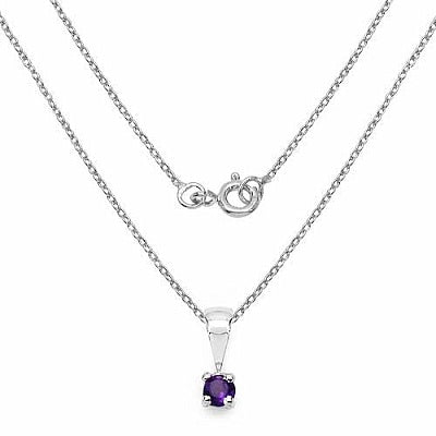 Genuine Amethyst Round-Cut Sterling Silver Solitaire Pendant