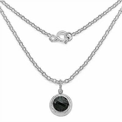 Genuine Black Onyx Sterling Silver Bezel-Set Solitaire Pendant