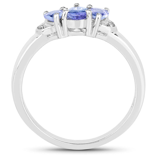 Genuine Tanzanite and White Diamond Sterling Silver Graduated Ring