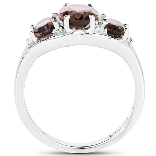 Genuine Smoky Quartz and White Topaz Sterling Silver Graduated Ring