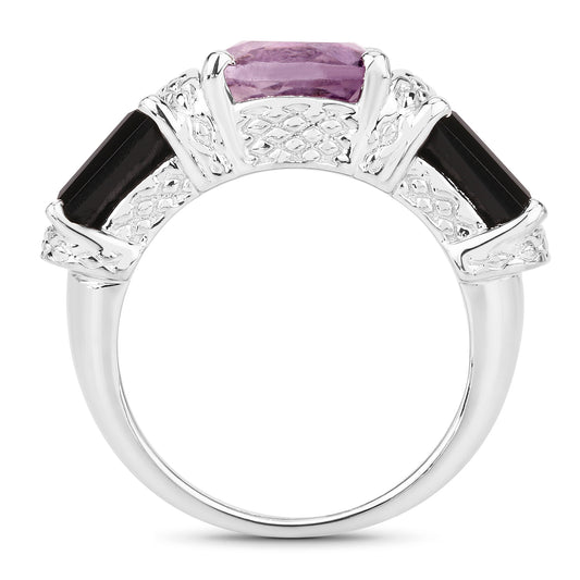 Genuine Amethyst and Black Onyx Sterling Silver Statement Ring