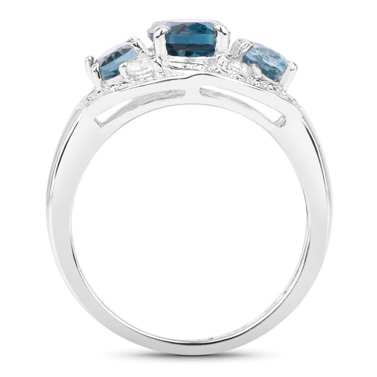 Genuine London Blue Topaz and White Topaz Sterling Silver 3-Stone Graduated Ring