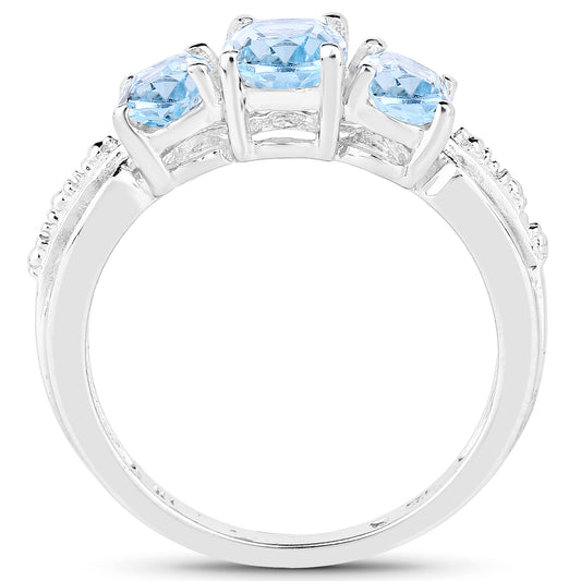 Genuine Blue Topaz Sterling Silver 3-Stone Ring