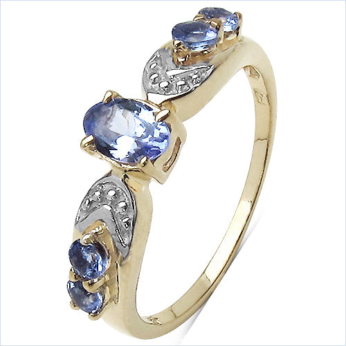 Genuine 14K Yellow Gold Plated Tanzanite Sterling Silver Ring