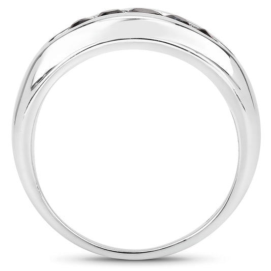 Genuine Black Sapphire Sterling Silver 5-Stones Graduated Ring
