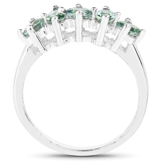 Genuine Green Sapphire Sterling Silver 5-Stone Graduated Ring