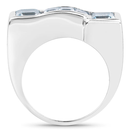 Genuine Blue Topaz Sterling Silver 5-Stone Graduated Ring