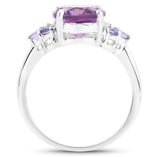 Genuine Amethyst and Tanzanite Sterling Silver Cocktail Ring