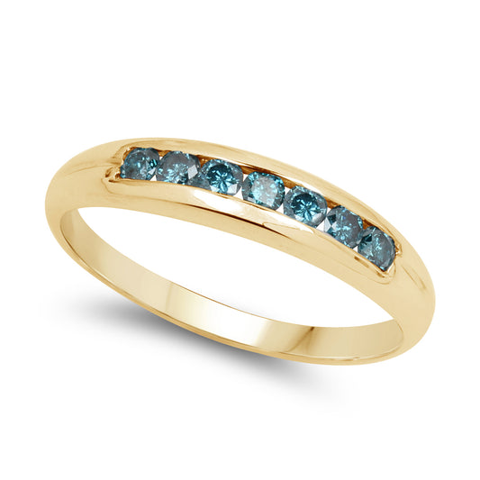 Genuine 14K Yellow Gold Plated Blue Diamond Sterling Silver Men's Ring