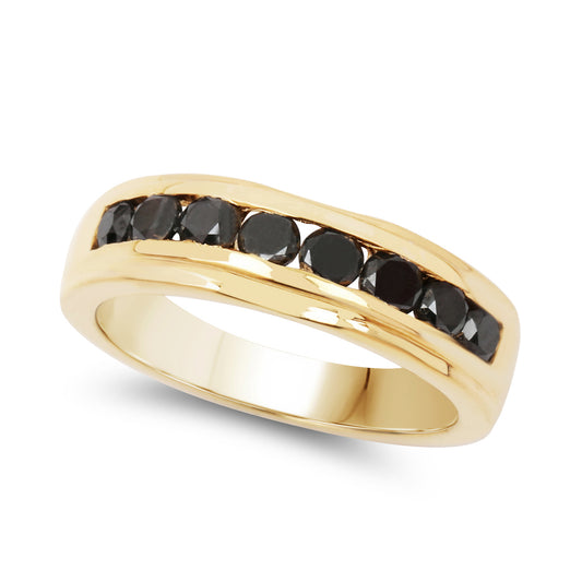 Genuine Black Diamond 14K Yellow Gold Plated Plated Sterling Silver Channel Set Band Ring