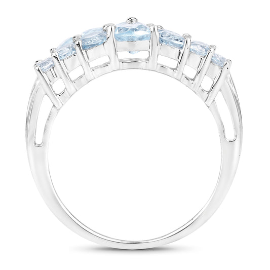 Genuine Aquamarine and White Diamond Band Ring in Sterling Silver