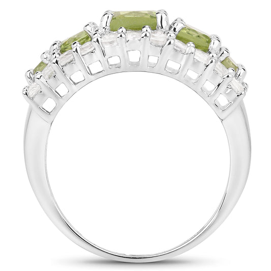 Genuine Peridot and White Topaz Sterling Silver Ring