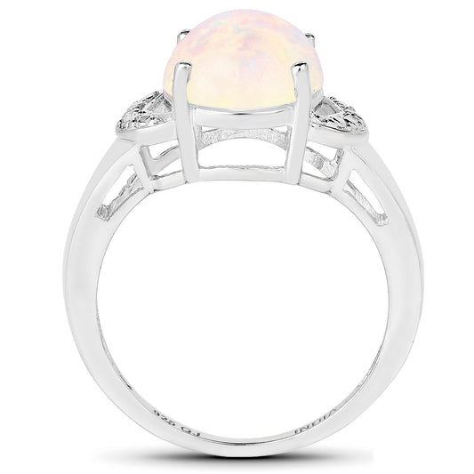 Genuine Ethiopian Opal and White Topaz Sterling Silver Graduated Ring