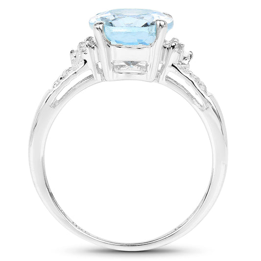 Genuine Blue Topaz and White Topaz Sterling Silver Graduated Ring