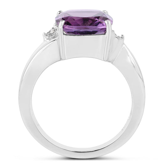 Genuine Amethyst Sterling Silver Solitaire Ring