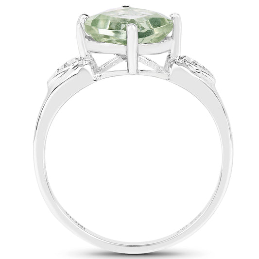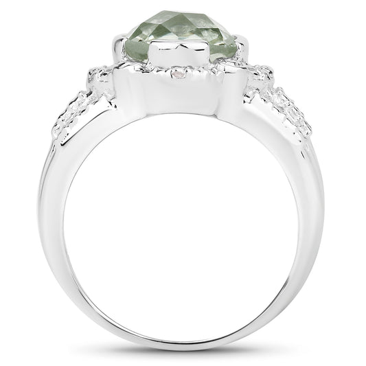 Genuine Green Amethyst and White Topaz Sterling Silver Ring