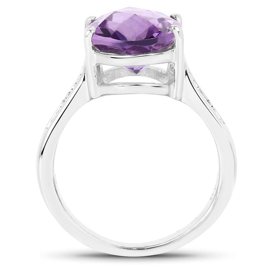 Genuine Amethyst and White Diamond Sterling Silver Graduated Ring