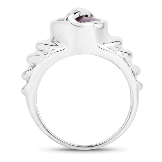 Genuine Ruby and White Diamond Sterling Silver Solitaire Ring