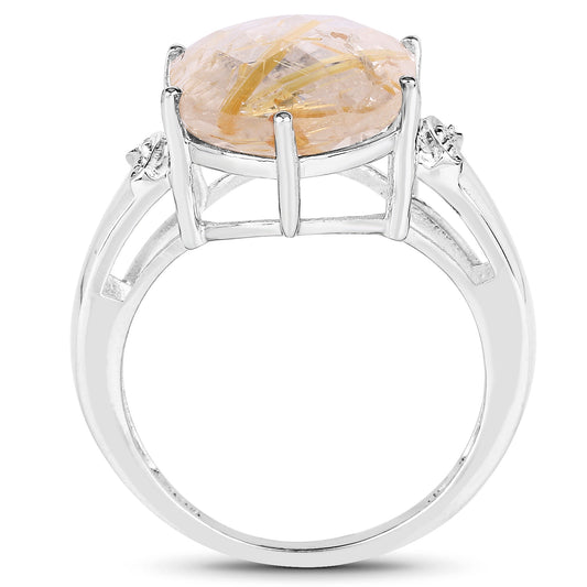 Genuine Rutile and White Topaz Sterling Silver Solitaire Ring