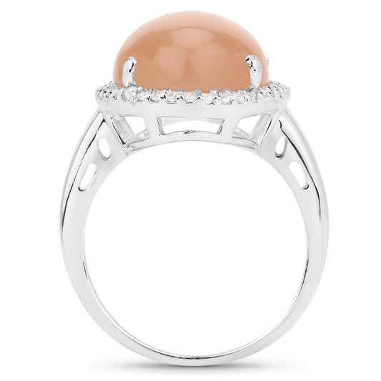Genuine Peach Moonstone and White Topaz Sterling Silver Halo Ring