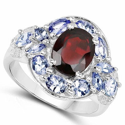 4.16CTW Genuine Garnet, Tanzanite & White Topaz .925 Sterling Silver Ring