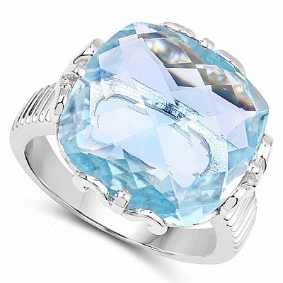 15.41CTW Genuine Blue Topaz .925 Sterling Silver Ring