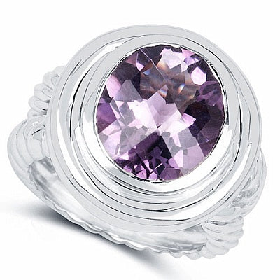 6.92CTW Genuine Amethyst .925 Sterling Silver Ring