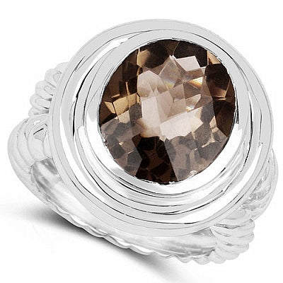6.59CTW Genuine Smoky Topaz .925 Sterling Silver Ring